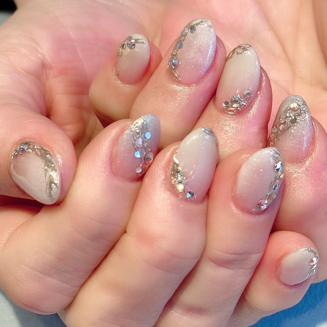 ミラー×ストーンのキラキラネイル✨